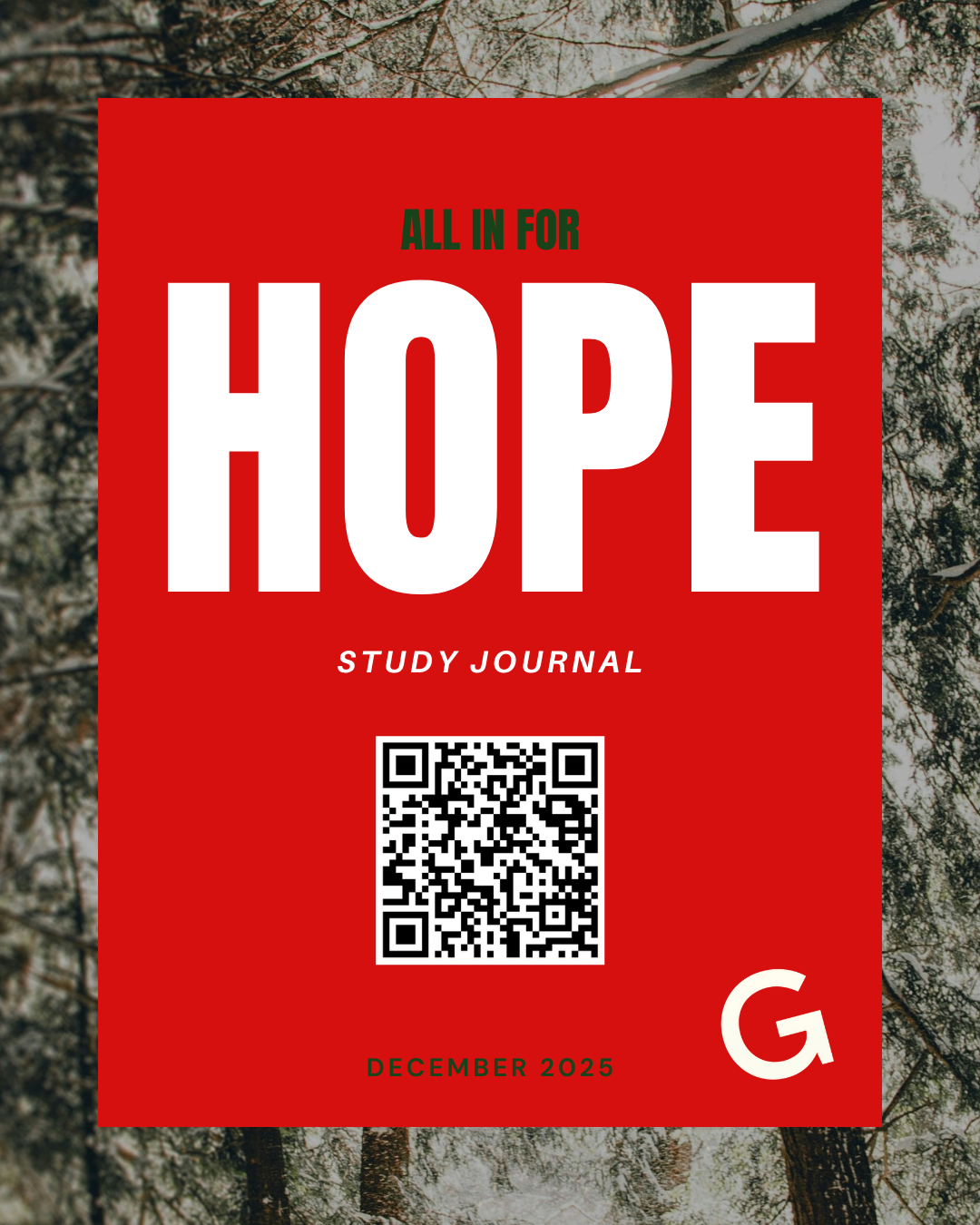 The All In for Hope Study Journal is designed to help you slow down, reflect, and experience the true meaning of Christmas. Each week includes scriptures, guided reflections, personal journaling space, and practical steps to grow in hope. Whether you're following the sermon series or studying on your own, this journal will help you draw closer to Jesus—the Hope who came near.